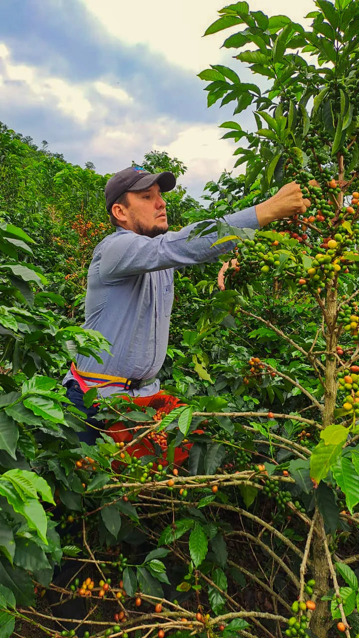 Viajamos por Colombia para encontrar a estos artistas, comprando sus cafés a precios económicamente sostenibles y desarrollando alianzas a largo plazo con ellos para que tengan la seguridad de invertir en sus fincas, mejorar su sustento y prosperar.
