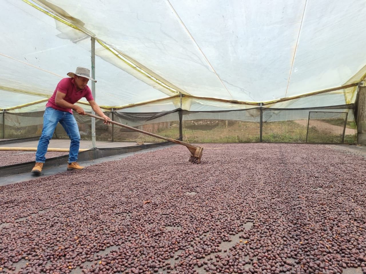 BENEFICIO: Selección de granos maduros en el árbol, luego selección manual de impurezas y granos defectuosos después de 24 horas es despulpado y puesto a fermentar por 36 horas, posteriormente se enjuaga y escurre para ponerse a secar en patios de secado con sistema parabólico por 25 días hasta lograr el 11% de humedad
